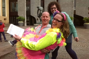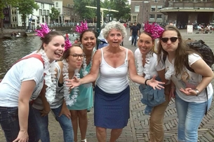 "Zoek niet verder! Wij hebben voor jullie het leukste en beste aanbod: The Wedding Game! Speciaal ontwikkeld voor een vrijgezellenfeest voor vrouwen!"